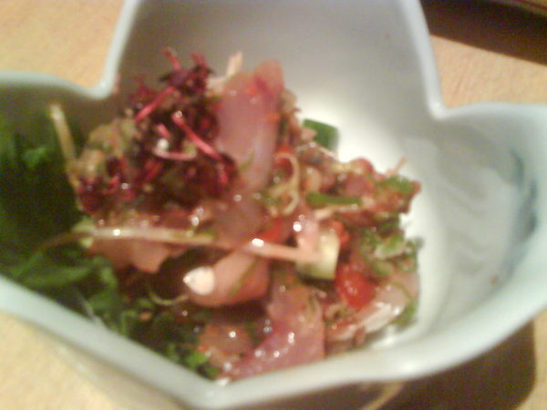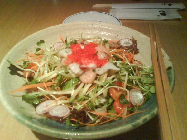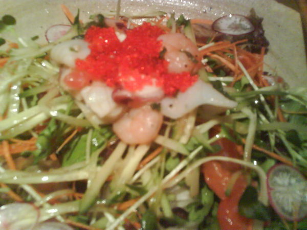 這是他的海鮮沙拉,裡面有魚卵、鮮蝦、鮭魚等,非常清爽的一道沙拉。
