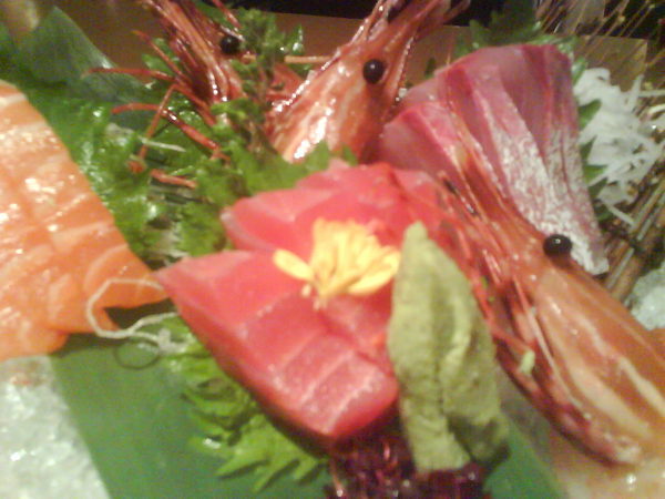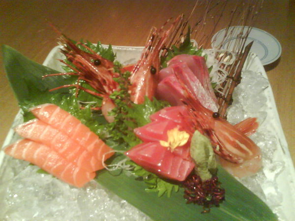 這是他的四色拼盤,有牡丹蝦三尾,鮭魚生魚片三片,甘魚三片,鮪魚三片,我要特別誇獎一下他的牡丹蝦真的是美味到極點,好好吃喔!